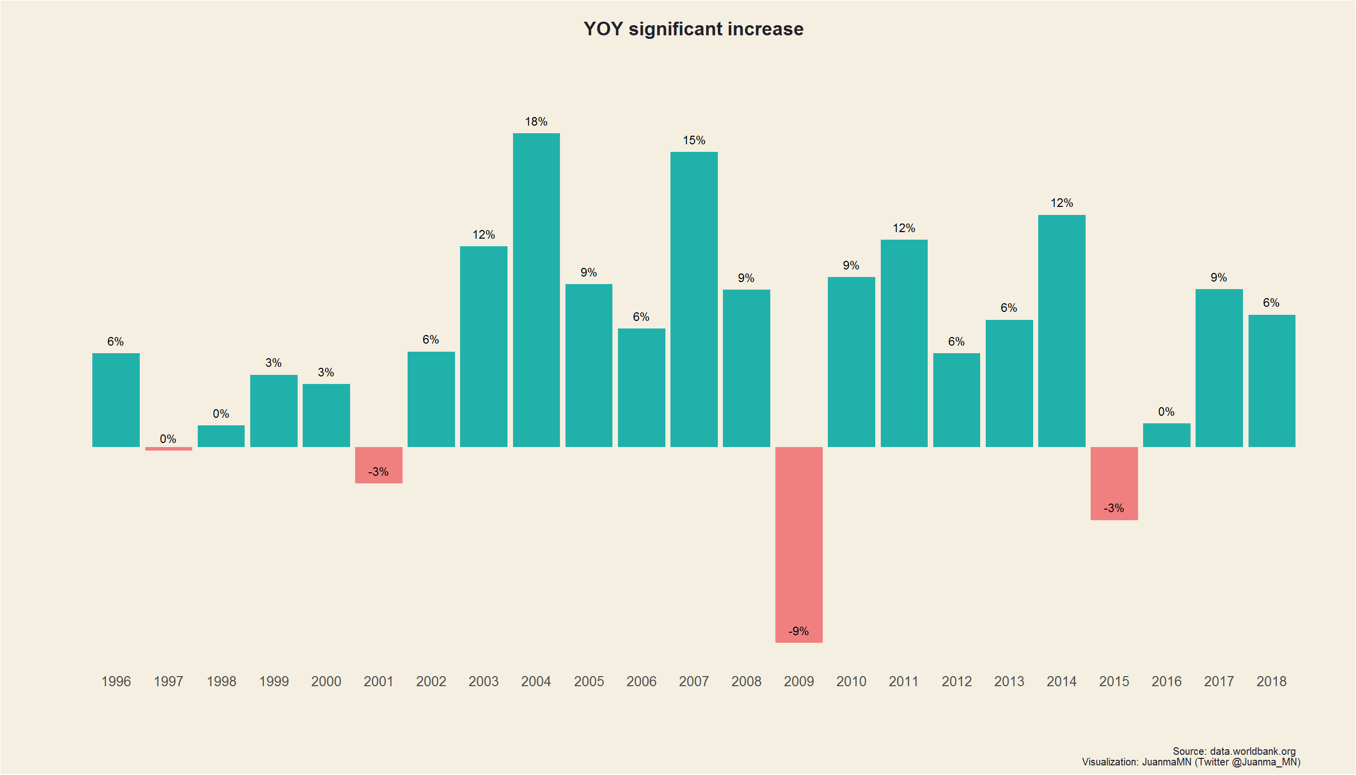 The following article provides an analysis of International tourism data from 1995 to 2018.
