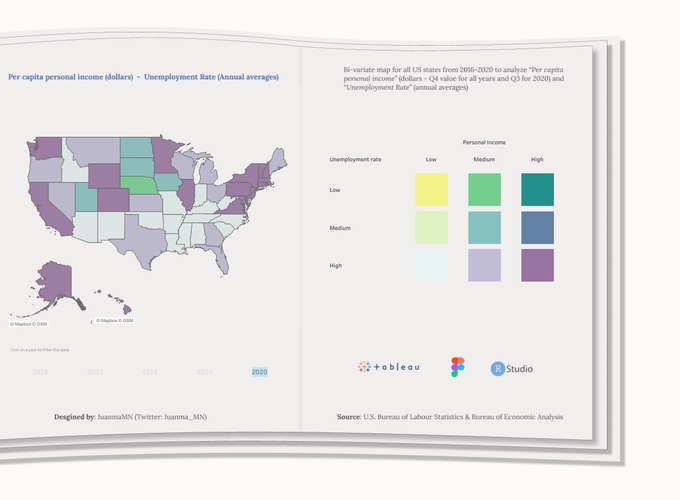 Photo U.S. bi-variate map - Personal Income - Unemployment rate Mar 20, 2021 Go to Project Site Photo U.S. bi-variate map - Personal Income - Unemployment rate Mar 20, 2021 Go to Project Site Tableau