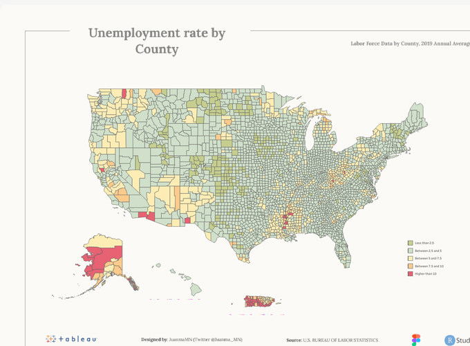 Photo US County Unemployment Rate - 2019 Apr 1, 2021 Go to Project Site Photo US County Unemployment Rate - 2019 Apr 1, 2021 Go to Project Site Tableau